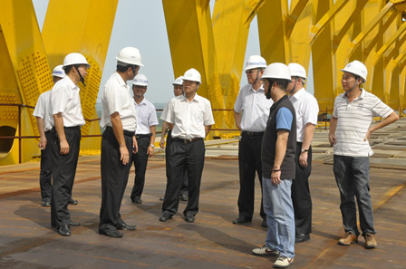 7月30日,四航局总经理孙国强在总经理助理方嘉煊及一、二、三公司主要负责人陪同下,到四航局贵广铁路GGTJ—13标项目检查指导工作。
